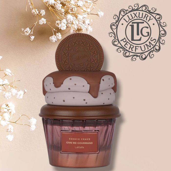 Descubre el Cookie Crave Eau de Parfum de Lattafa, una exquisita fragancia de la colección "Give Me Gourmand" que evoca la dulzura de un delicioso galleta recién horneada. Este perfume dulce y envolvente te transporta instantáneamente a una acogedora panadería.