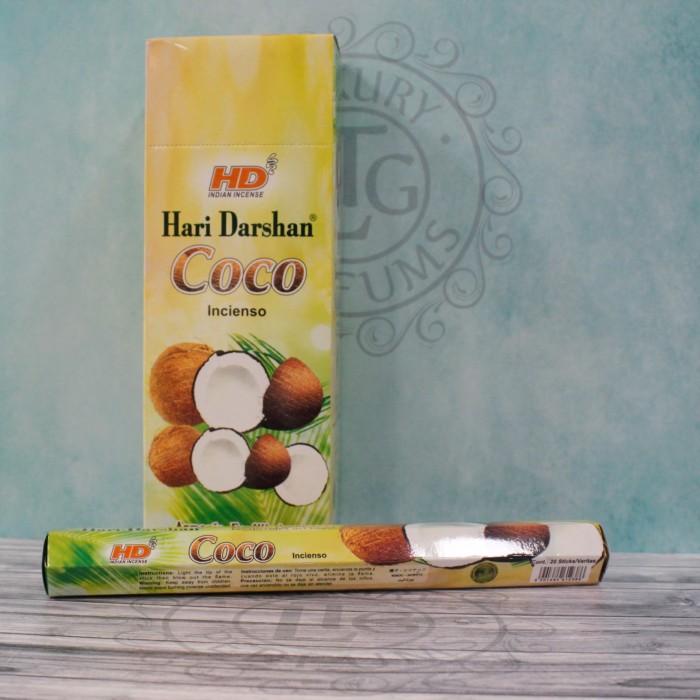 Incienso de coco Hari Darshan, uno de los mayores fabricantes de productos de aromaterapia y de incienso espiritual de India.
