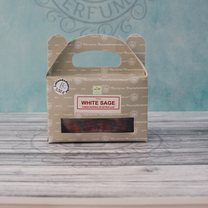 Conos incienso salvia blanca con humo de reflujo en cascada, de fragancia dulce, floral, presentados en caja. 20 minutos de duración aproximada. Producen humo en cascada sirviéndose de una fuente para conos.