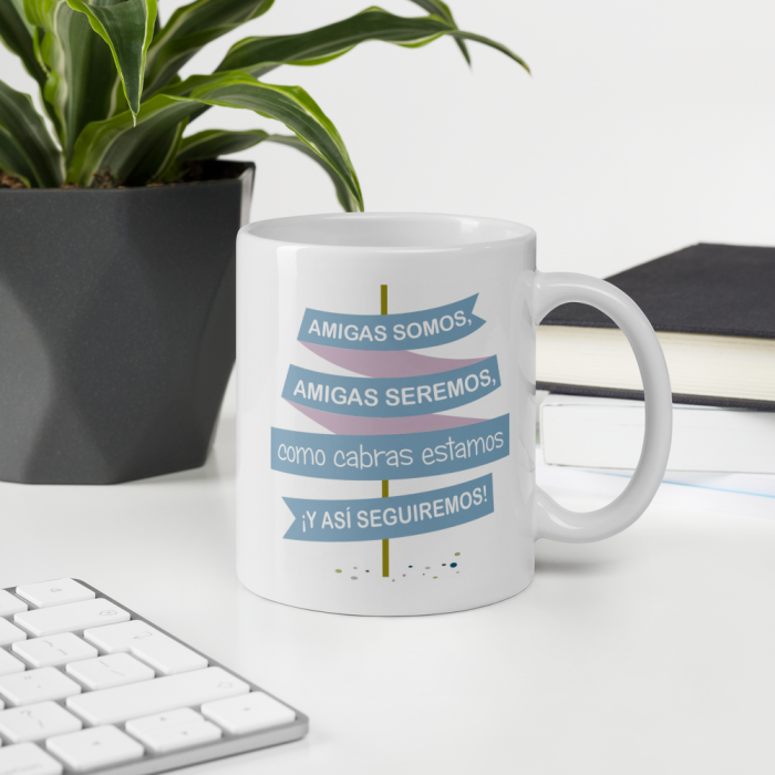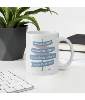 Taza amigas somos como cabra estamos realizada en cerámica con posibilidad de agregar nombres sin coste