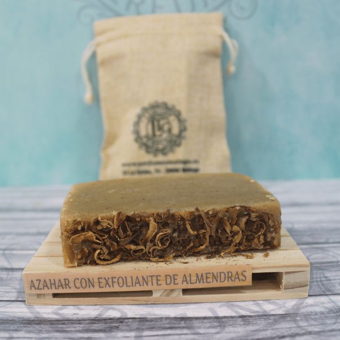 Jabón botánico de Azahar y Almendras Molidas - 100% Natural 90gr. aprox: Este jabón es relajante, crea un ambiente de calma; la almendra molida hace una exfoliación suave y natural.