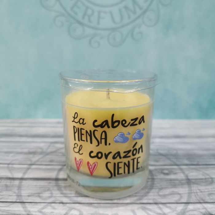 Vela aromática en vaso con mensaje para crear un ambiente, ideal como regalo.