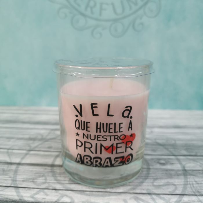 Vela aromática en vaso con mensaje para crear un ambiente, ideal como regalo.
