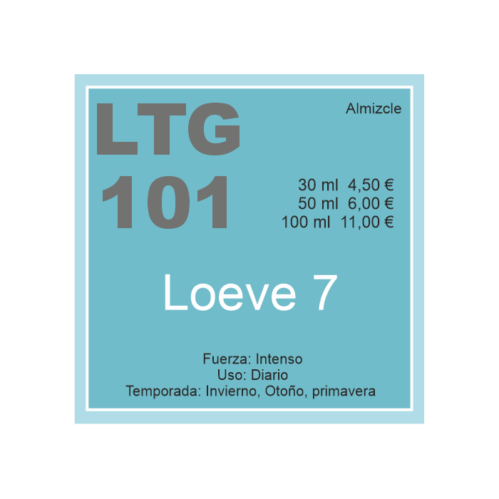 Loeve 7 un gran perfume con un aroma masculino la familia olfativa Almizcle Amaderado Floral Las Notas de Salida son pimienta y manzana Las Notas de Corazón son rosa, lirio de los valles (muguete), neroli y incienso Las Notas de Fondo son cedro, vetiver y almizcle.