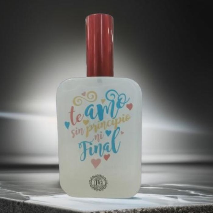 Perfume de 100 mililitros con personalización impresa directa sobre el envase. Modelo "TE AMO SIN PRINCIPIO NI FINAL"