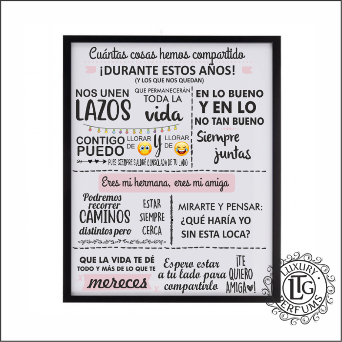 Cuadro lámina para amiga especial enmarcada e impreso directamente por su interior en el cristal consiguiento un alto brillo en la imagen, frase dedicada a tu mejor amiga ideal para regalar. El cuadro es válido para colgar o colocar de pie