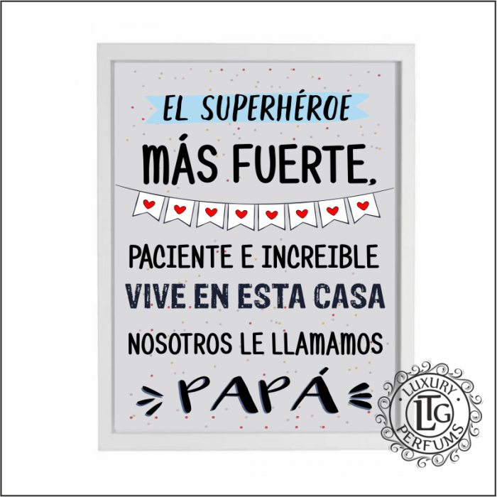 Cuadro lámina para regalar a ese Papá, que aunque lo sabe a veces hay que recordarle que es el mejor, lámina impresa directamente por su interior en el cristal consiguiento un alto brillo en la imagen. El cuadro es válido para colgar o colocar de pie