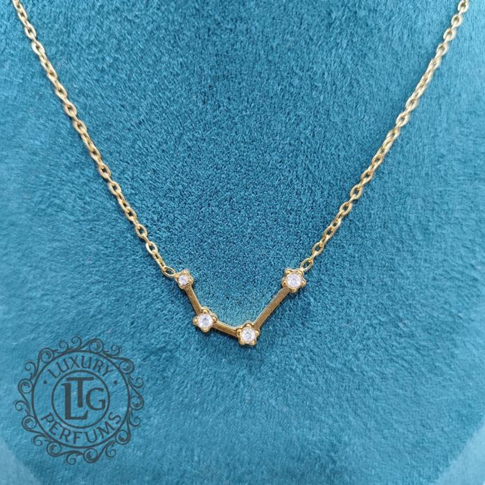 Espectacular collar de acero quirúrgico sin níquel que representa la constelación de Acuario. Este collar, en un elegante tono dorado, es el complemento perfecto para aquellos nacidos entre el 20 de enero y el 18 de febrero.